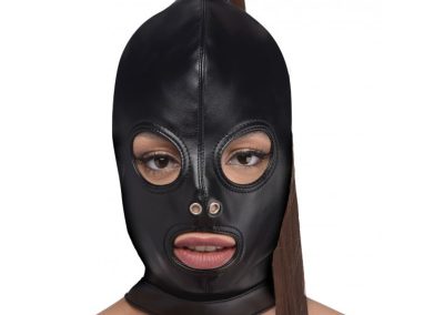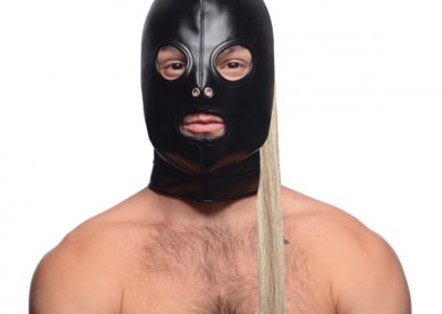 Purpose: Used in BDSM and fetish play for sensory deprivation, objectification, and fantasy scenarios, with the ponytail serving as both a visual aesthetic and sometimes a sensory element (like a feather tickler).